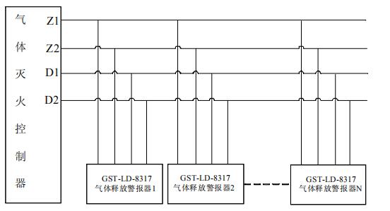 三、海灣GST-LD-8317氣體噴灑指示燈布線要求: