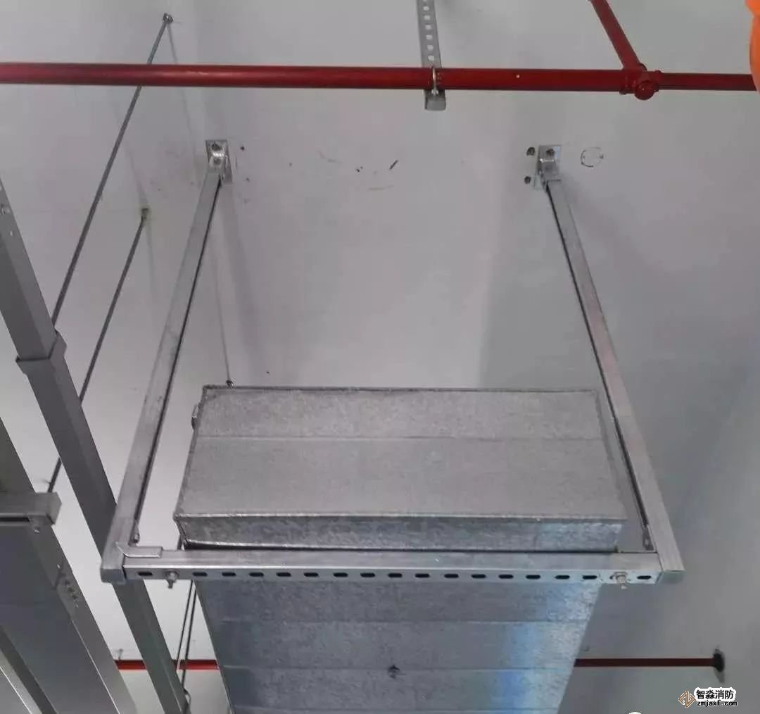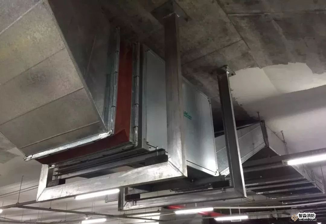 排煙管道安裝,法蘭采用倒角法蘭,美觀實(shí)用,標(biāo)識(shí)清楚。