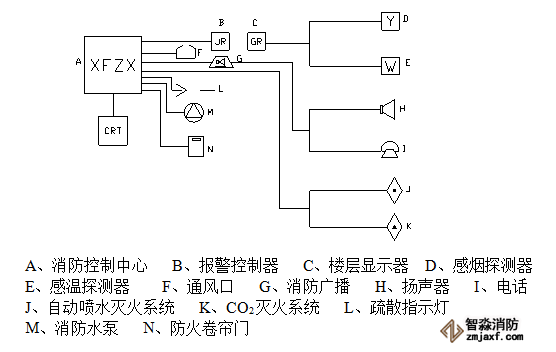 根據(jù)國家有關(guān)消防法規(guī)的規(guī)定,本系統(tǒng)消防設(shè)施主要由以下系統(tǒng)組成: