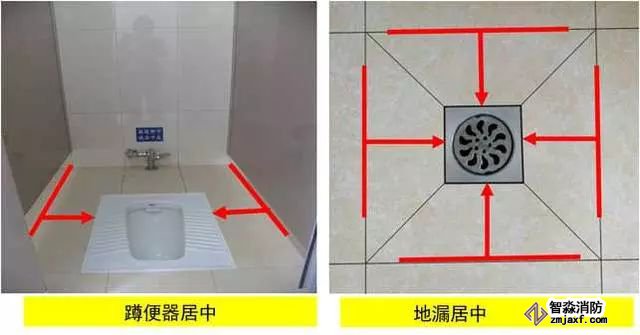 1、衛(wèi)生器具安裝:根據(jù)衛(wèi)生器具規(guī)格、間距及排水管位置進行排布,使器具與排水管、配件與墻面磚騎縫或居中。水嘴出水口宜于臺盆落水口上下對正。排水管應垂直,成排存水彎應朝向一致,存水彎與排水管間隙用瀝青麻絲填塞密實后加不銹鋼裝飾圈,地漏應避開人上廁所時常站的地方,且距板塊中間對稱設置。
