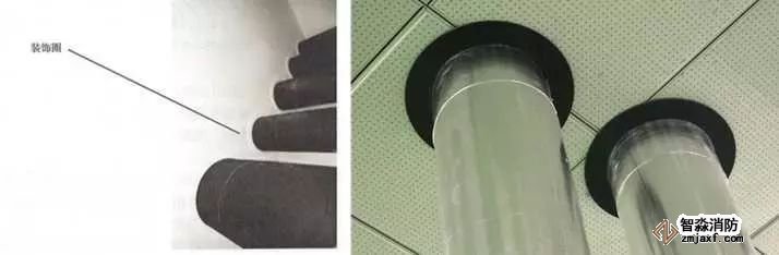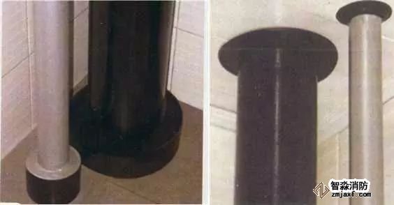 管道穿樓板處根部應設套管或護墩,套管與管道之間應做防火封堵,頂部齊平光滑,設裝飾圈。