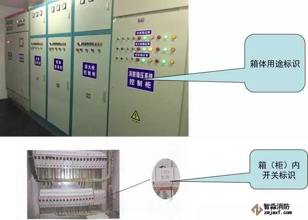 配電箱標識內(nèi)容為箱(柜)體、空開、系統(tǒng)圖三部分。