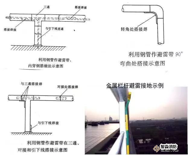 屋面利用金屬欄桿做避雷帶示例