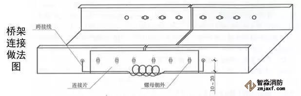 1、橋架直線段安裝連接:按圖測量、放線、定位;支架安裝時應掛線或彈線找直,用水平尺找平,以保證成排支架安裝后橫平豎直;橋架用連接片連接(或連接段連接),墊圈、彈簧墊、螺母緊固,螺母應位于橋架外側。除鍍鋅橋架外,相鄰段橋架之間應采用不小于4mm²軟銅線做接地跨接。在橋架外,沿橋架全長敷設不小于φ8的圓鋼或25x4的鍍鋅扁鋼接地母線,每個支架和接地母線可靠跨接,接地母線刷黃綠相間油漆。采用橋架連接段連接的優(yōu)點是橋架底部無縫隙,整齊美觀。