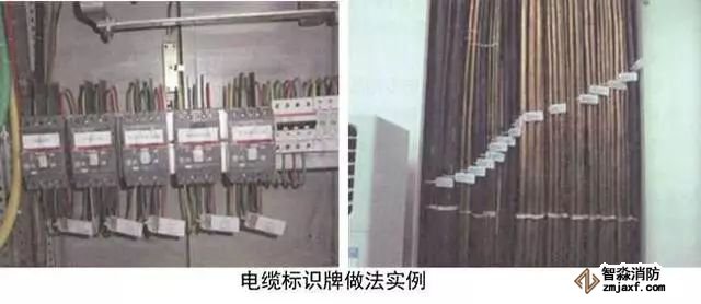 在電纜始端、末端、轉彎處、分支處應設置標識,電氣豎井橋架內(nèi)每層每根電纜均應標識,標識牌應采用定型加工的電纜標牌用尼龍扎帶綁扎在電纜上。