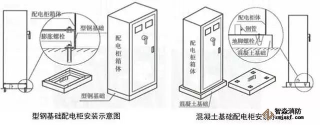 1、配電柜安裝:參照配電柜的寬厚尺寸,制作10號槽鋼基礎,按設計位置安裝,在型鋼基礎的下面四角適當?shù)奈恢勉@孔,在地面相應位置用膨脹螺栓固定基礎型鋼,調(diào)整水平度;將配電柜與型鋼基礎對正,然后用螺栓固定,成排配電柜兩兩之間側面用螺栓連接;按系統(tǒng)圖或接線圖要求將電纜、電線與相應的電器端子連接;將電源的接地線(PE線)、各回路的接地線(PE線)、金屬導管的接地線接在配電柜的接地端子上。配電室房門應加設防水防火擋鼠板,高度不低于0.7m。