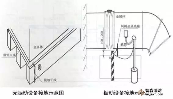 7、高層建筑管道頂部和底部接地:有接地預埋鋼板或垂直接地母線上引接接地母線,接地母線距地300~500mm,距墻10~15mm,并間隔100mm刷45°斜向黃綠相間油漆。將于管徑相匹配的接地抱箍安裝于管道上,抱箍必須與金屬體緊密接觸,編織軟銅線一端與抱箍連接,另一端與接地母線連接,螺栓連接處應加平墊片和彈簧墊片。DN≥100mm時,采用10mm²編織軟銅線,DN≤80mm時,采用4mm²編織軟銅線。