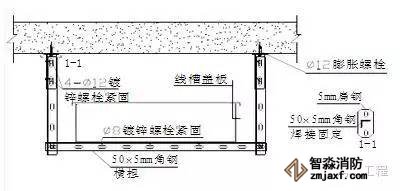 3.線槽橋架在跨越防火分區(qū)及線槽穿樓板的部位做防火封堵處理。封堵板用2mm厚防火板,具體做法如圖所示: