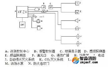 本系統(tǒng)的消防設(shè)施工作原理如圖: