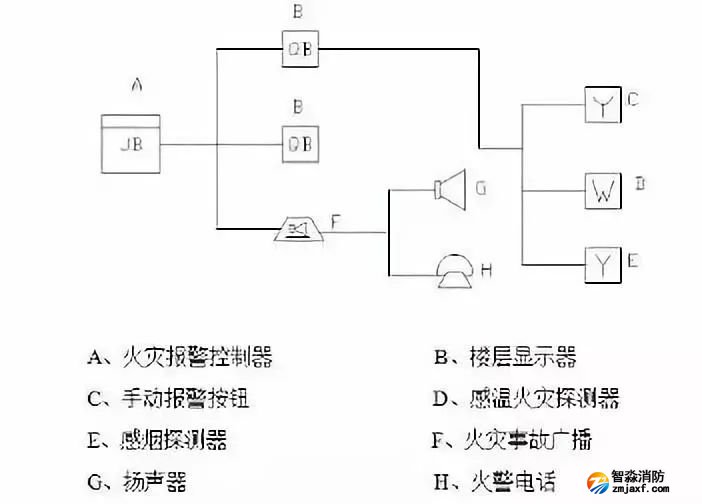 火災(zāi)自動報警系統(tǒng)的基本結(jié)構(gòu)如圖:
