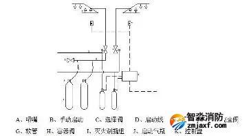 本系統(tǒng)的主要設(shè)備和器材包括:啟動氣瓶、啟動氣瓶、滅火劑瓶組、控制器、選擇閥、安全閥、容器閥、噴嘴等。