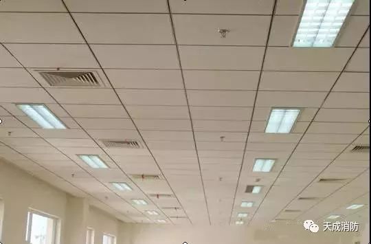 吊頂板上煙感、噴頭、風(fēng)口及燈具安裝均勻合理的布局。