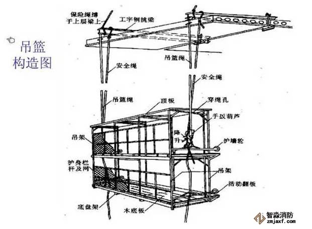 ⑸、大型條形內(nèi)腳手架,操作步層兩側(cè),應(yīng)設(shè)防護(hù)欄桿保護(hù)。