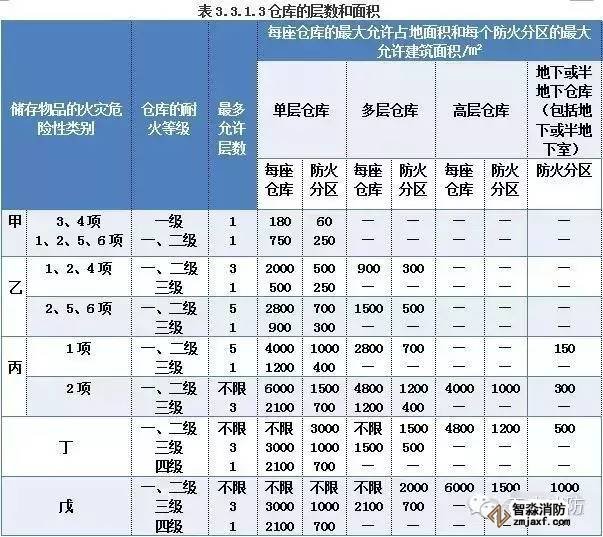 2.獨(dú)立建造的硝酸銨庫房、電石庫房、聚乙烯庫房、尿素庫房、配煤庫房以及車站、 碼頭、機(jī)場內(nèi)的中轉(zhuǎn)倉庫,其建筑面積可按表 3.3.1.3 的規(guī)定增加 1 倍,但耐火等級不應(yīng)低 于二級。
