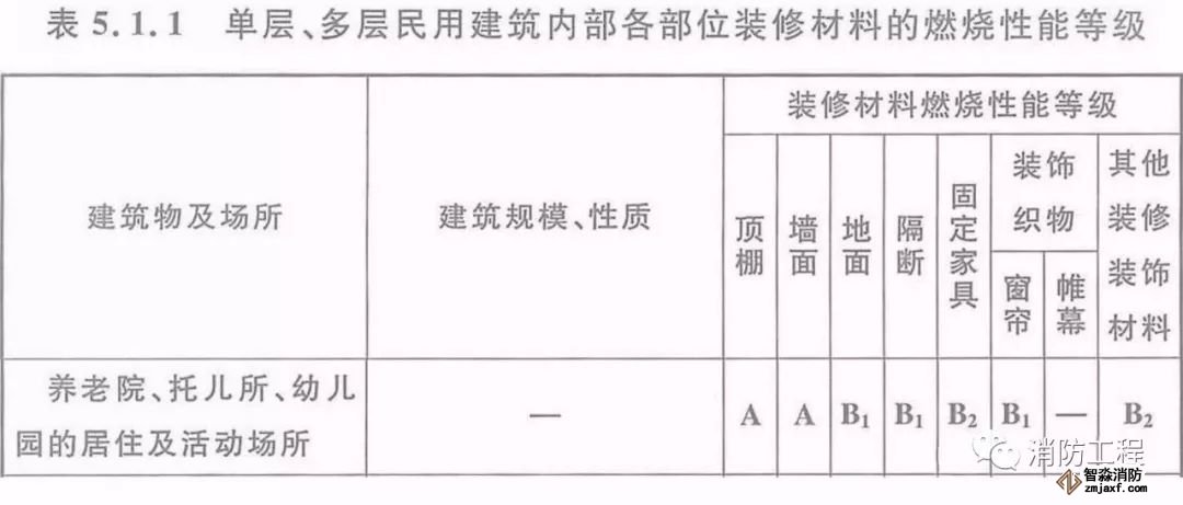 1、當(dāng)設(shè)置在單層、多層民用建筑時(shí),內(nèi)部各部位裝修材料的燃燒性能等級(jí),不應(yīng)低于《建筑內(nèi)部裝修設(shè)計(jì)防火規(guī)范》5.1.1的規(guī)定。