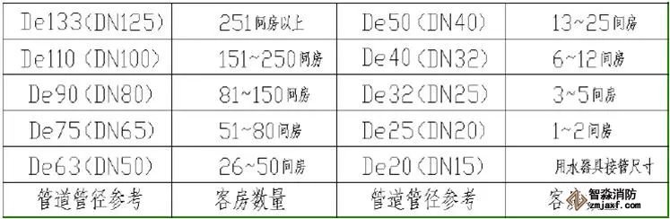 4.冷水管材質(zhì)采用PPR給水管?!?100間房計(jì)算】主水管的管徑在 De90左右以上,干管的管徑:De50-75,支管的管徑:De25-50 ??头啃l(wèi)生間給水管徑要求:不小于PPR-De20的管徑。