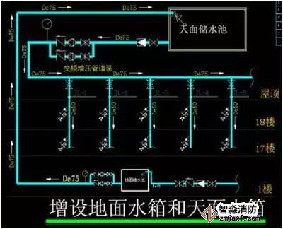 4、增設(shè)地面水箱和天面水箱的供水說明: