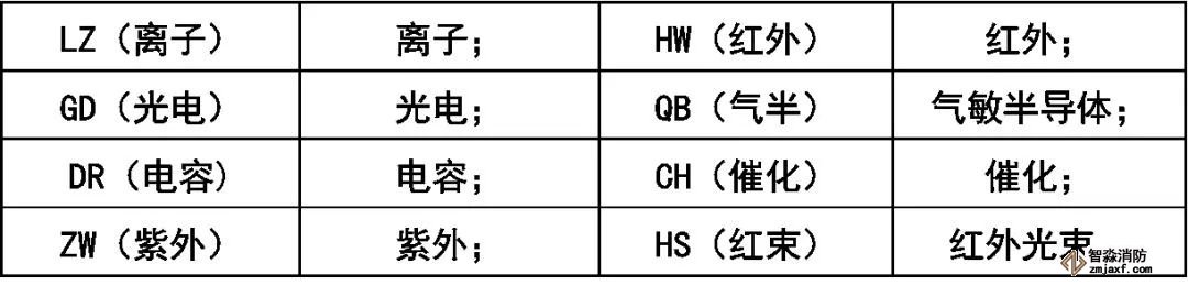 火災(zāi)探測(cè)器、報(bào)警器特征表示法: