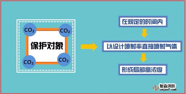 局部應(yīng)用滅火系統(tǒng)指在規(guī)定的時間內(nèi)向保護對象以設(shè)計噴射率直接噴射氣體,在保護對象周圍形成局部高濃度,并持續(xù)一定時間的滅火系統(tǒng)。