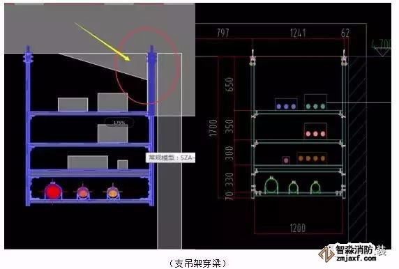 綜合支吊架的定位依據(jù)是廠家深化圖中的平面圖,優(yōu)先定位水平位置,再根據(jù)標(biāo)高定位垂直方向。