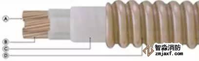 A. 導(dǎo)體:絞合銅導(dǎo)體;B. 絕緣:合成云母帶;C. 填充:無機材料;D. 銅套:縱包焊接并軋紋