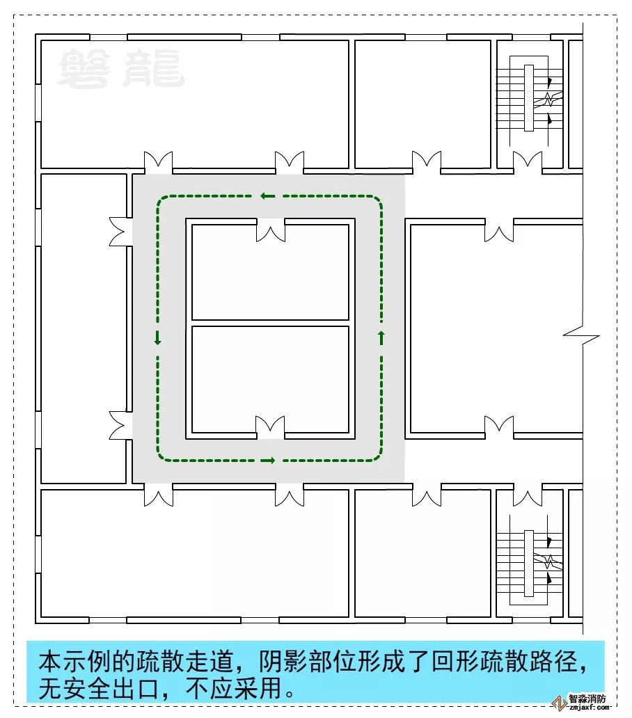 四、沒有安全出口的回形(環(huán)形)疏散路線,不應(yīng)采用: