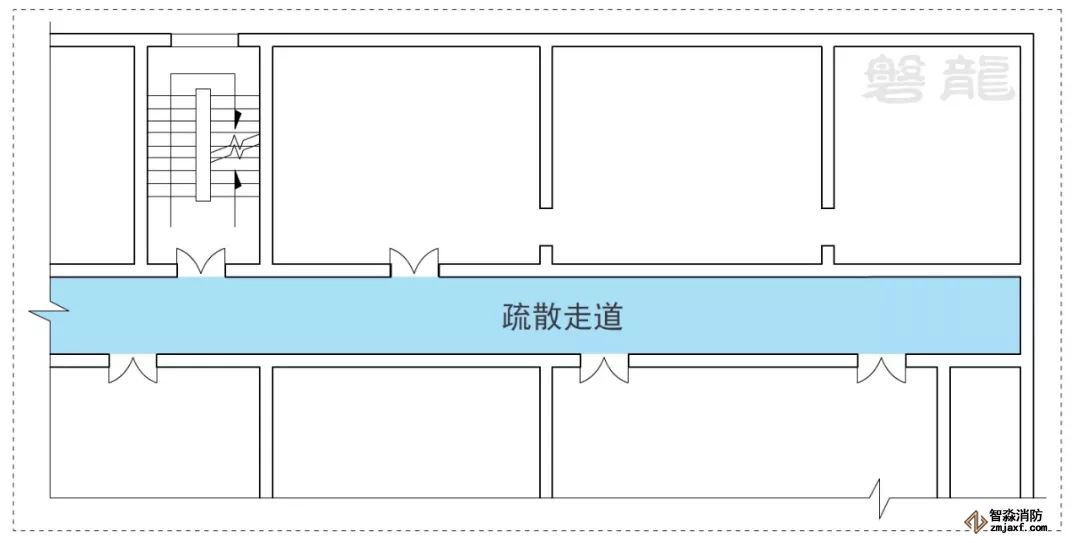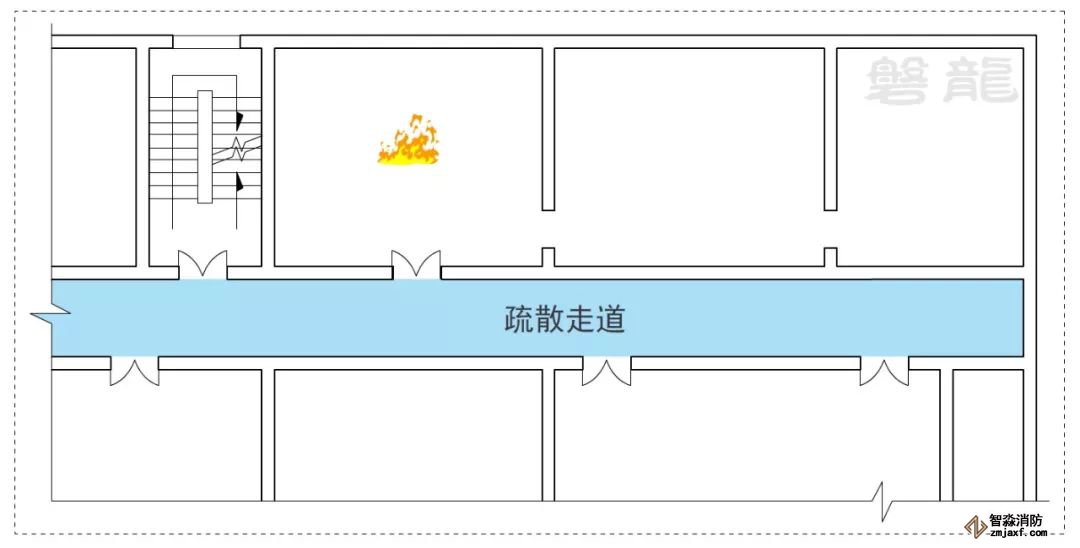 1、室內(nèi)房間屬于危險區(qū)域,一旦發(fā)生火災(zāi),人員應(yīng)迅速疏散至相對安全的次危險區(qū)域(疏散走道),通過疏散走道疏散至安全出口(圖示1)。