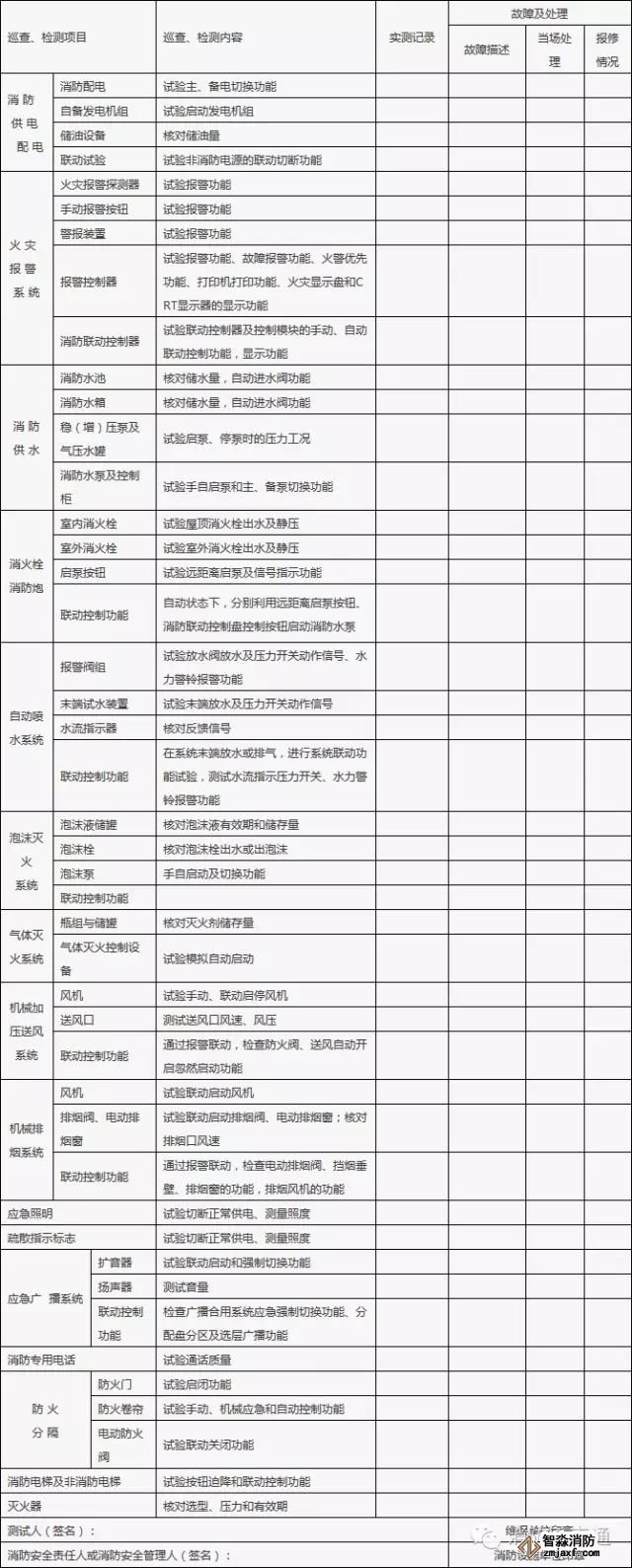 4、故障排除后,應(yīng)由消防安全管理人簽字認可,故障處理記錄檔備查。