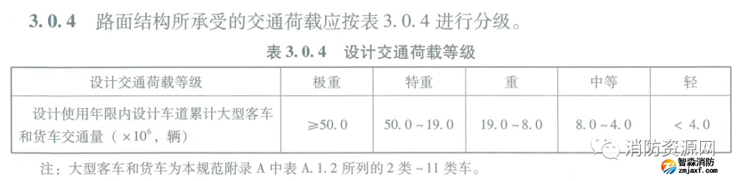 五、考慮救援出車的隨機(jī)性,尤其是未來(lái)可能配置更大噸位和救援能力的消防車。本文認(rèn)為,消防車道和登高場(chǎng)地的承載力要求,宜以消防車可能作用在地面的最大輪壓為準(zhǔn),以消防車產(chǎn)品標(biāo)準(zhǔn)允許的軸荷為依據(jù),來(lái)確定消防車道承載力,是較為合理的方案: