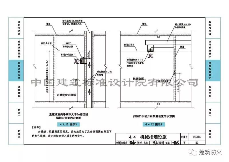 5、第112頁的“4.4.12圖示3”中側(cè)墻上安裝常閉多葉排煙口前,排煙支管上增加了“280℃排煙防火閥”。