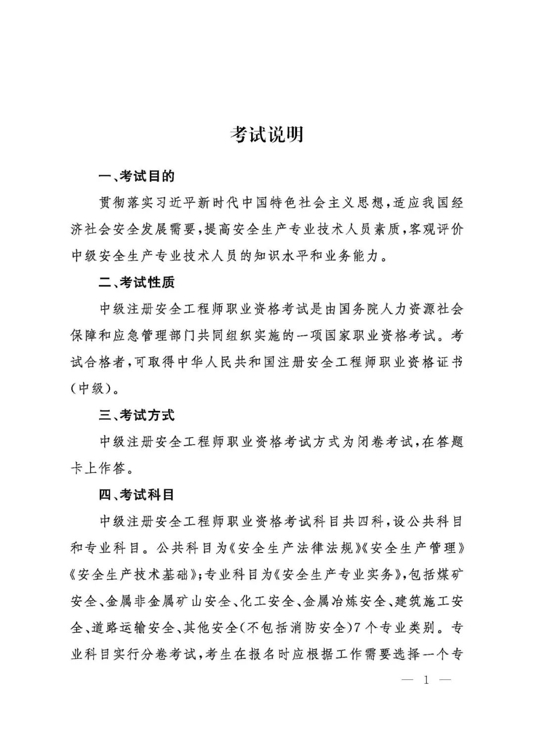1.中級注冊安全工程師職業(yè)資格考試大綱