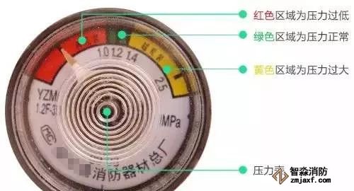 2、儲壓式滅火器壓力符合要求,壓力表指針在綠區(qū);