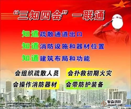 三知”是指知道消防設(shè)施和器材的位置、知道安全通道和出口、知道建筑布局和功能;“四會”是指會疏散逃生會撲救初期火災(zāi)、會穿戴防護(hù)裝具會使用消防器材;“一聯(lián)通”是指消防支隊(大中隊)與微型消防站、微型消防站與隊員要保持通信聯(lián)絡(luò)暢通。