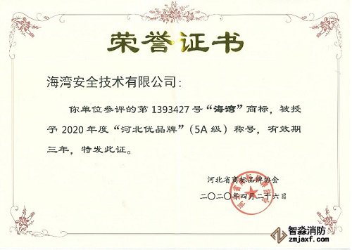 海灣被河北省品牌商標協(xié)會授予“河北優(yōu)品牌”(5A級)稱號