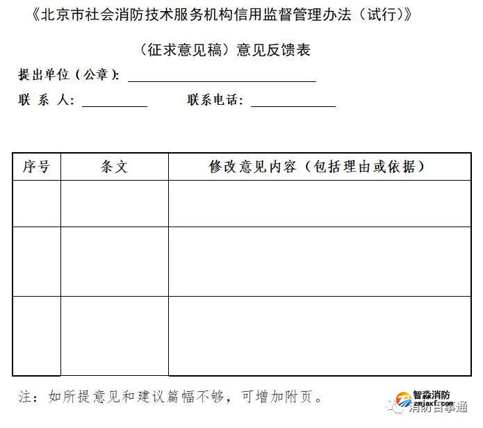 關(guān)于征求《北京市社會(huì)消防技術(shù)服務(wù)機(jī)構(gòu)信用監(jiān)督管理辦法(試行)》(征求意見稿)意見的通知