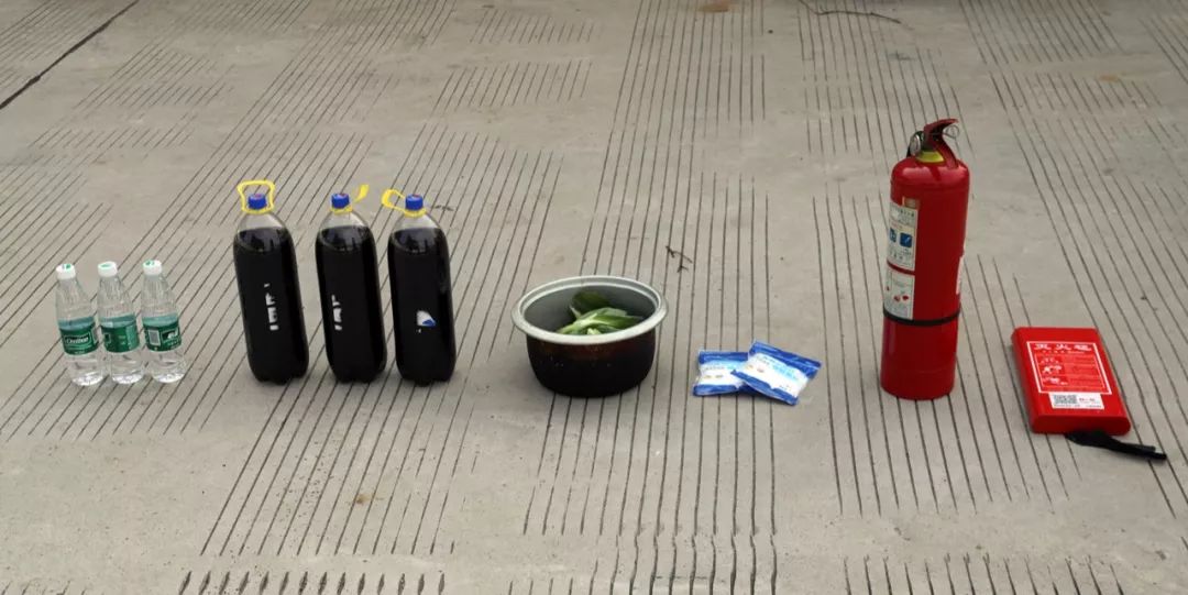 消防員準(zhǔn)備了多種家庭中常見(jiàn)的簡(jiǎn)易滅火用品:水、可樂(lè)、青菜、小蘇打、滅火毯以及鍋蓋,分別用它們進(jìn)行油鍋滅火實(shí)驗(yàn)。