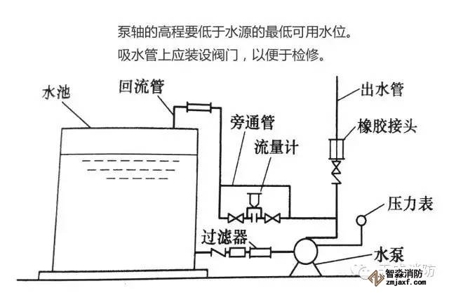 (1)消防水泵應(yīng)采取自灌式吸水;