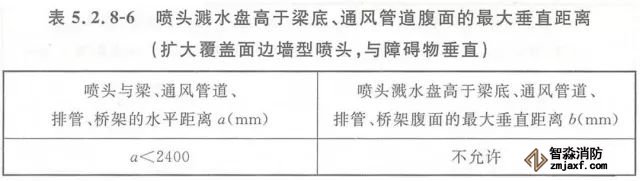 5.2.9 當(dāng)梁、通風(fēng)管道、排管、橋架寬度大于1.2m時,增設(shè)的噴頭應(yīng)安裝在其腹面以下部位。