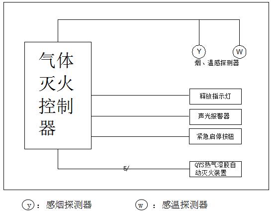 發(fā)生火災(zāi)時(shí),當(dāng)一路探測(cè)器報(bào)警后,設(shè)在該防護(hù)區(qū)域內(nèi)的警鈴動(dòng)作;兩路探測(cè)器都報(bào)警后,設(shè)在該防護(hù)區(qū)域內(nèi)外的蜂鳴器及閃燈動(dòng)作;系統(tǒng)進(jìn)入延時(shí)階段,控制盤(pán)完成相關(guān)設(shè)備的聯(lián)動(dòng)控制。經(jīng)過(guò)延時(shí)后,控制盤(pán)輸出24V直流信號(hào)電源啟動(dòng)儲(chǔ)氣瓶組上的電磁閥,打開(kāi)儲(chǔ)氣瓶組釋放滅火劑氣體,滅火劑沿噴射短管和噴頭輸送到防護(hù)區(qū)域滅火。如值班人員先于火災(zāi)探測(cè)系統(tǒng)發(fā)現(xiàn)火情,當(dāng)用手提式滅火器或其它移動(dòng)式滅火設(shè)備無(wú)法撲滅火災(zāi)時(shí),可直接手動(dòng)啟動(dòng)來(lái)滅火。如發(fā)現(xiàn)是系統(tǒng)誤動(dòng)作,或確有火災(zāi)發(fā)生但僅使用手提式滅火器和其它移動(dòng)式滅火設(shè)備即可撲滅火災(zāi),可按下設(shè)在防護(hù)區(qū)域門(mén)外的緊急止噴按鈕,可以使系統(tǒng)暫時(shí)停止釋放藥劑。如需繼續(xù)開(kāi)啟氣體滅火系統(tǒng),則只需松開(kāi)緊急停止開(kāi)關(guān)即可。