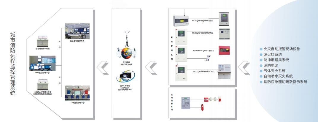 海灣GST119NET城市消防遠(yuǎn)程監(jiān)控管理系統(tǒng),以現(xiàn)代通信和網(wǎng)絡(luò)傳輸技術(shù)為基礎(chǔ)結(jié)合語音對(duì)講、視頻聯(lián)動(dòng)確認(rèn),WEB信息發(fā)布等多種先進(jìn)手段,可以對(duì)包括城市區(qū)內(nèi)重點(diǎn)單位、大型室內(nèi)娛樂場(chǎng)所、高層建筑、地下設(shè)施、賓館、商場(chǎng)、石化企業(yè)、易燃易爆性質(zhì)等單位企業(yè)的建筑物火災(zāi)報(bào)警系統(tǒng)進(jìn)行大區(qū)域聯(lián)網(wǎng)管理,實(shí)現(xiàn)有效監(jiān)管、快速報(bào)警,確保了火災(zāi)探測(cè)報(bào)警系統(tǒng)和消防安全設(shè)施正常運(yùn)行,提高火災(zāi)探測(cè)報(bào)警系統(tǒng)的可靠性、降低誤報(bào)率;同時(shí)通過傳輸火災(zāi)探測(cè)報(bào)警系統(tǒng)的設(shè)備運(yùn)行數(shù)據(jù)和報(bào)警信息,為消防監(jiān)管和滅火救援部門提供強(qiáng)有力技術(shù)支持,實(shí)現(xiàn)消防報(bào)警自動(dòng)化,提高對(duì)火災(zāi)初期的發(fā)現(xiàn)和報(bào)警速度,準(zhǔn)確迅速撲救火災(zāi),加速了城市消防管理智能化、網(wǎng)絡(luò)化的發(fā)展進(jìn)程,從而提高整體防災(zāi)減災(zāi)技術(shù)水平和綜合能力。